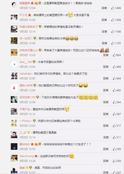 不过对于S专门拍摄的表情包,大家都是以一种调侃的语气表示这种表情并没有《康熙来了》里面自然和好用。因为很多随机抓拍的表情才是你当下真实情绪的表现,不仅有张力还好看。不过S有着一份心在节目结束以后满足我们使用表情包的心情还是很让人感动。
