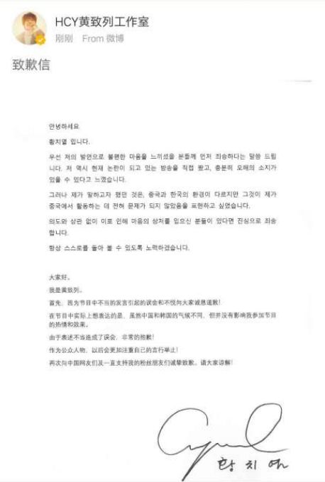 眼看着事情越闹越大,黄致列工作室站出来道歉了。