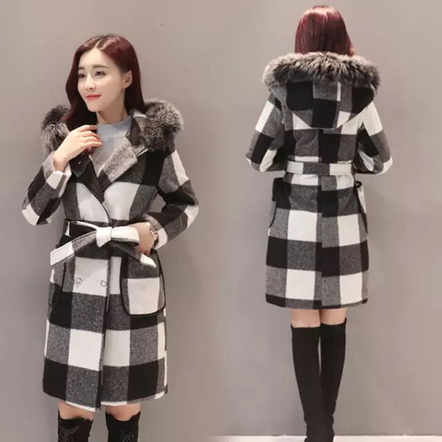 经典的大格纹连帽外套颇有复古气息,笔挺的廓形非常显瘦,大毛领装点贵气十足!