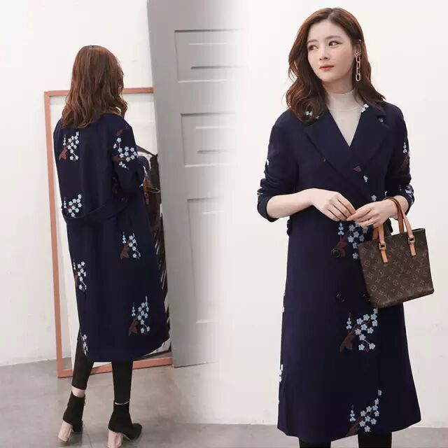 美丽的花朵在挺括的呢料上活灵活现,流畅线条结合双排扣设计干练中透着丝丝女人味!