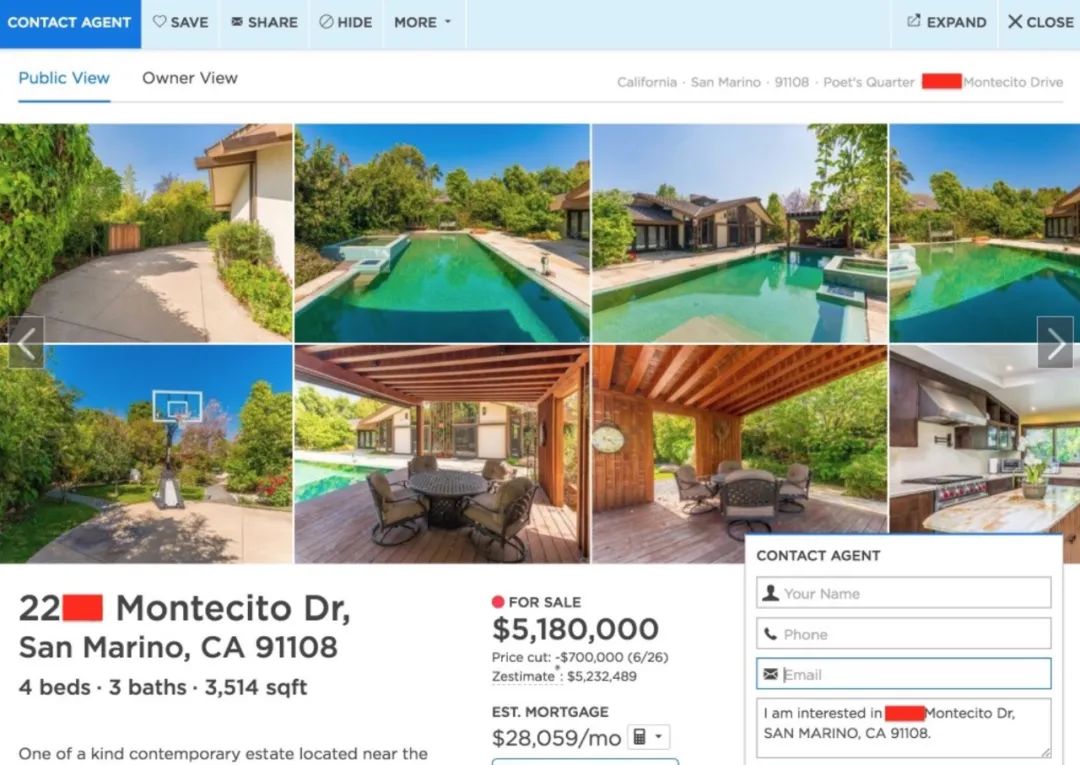 这套房2019年度房产税达到94379美元,而且每月的HOA(可以理解为物业费)也要1200美元,简单计算,这套房的持有成本一年就超过10.8万美元,这个数字比美国大多数家庭的收入还要高。不过对于实力深不见底的中国富人来说,这个钱只是洒洒水。这套房真的是董卿的吗?下面就来验证一下。
