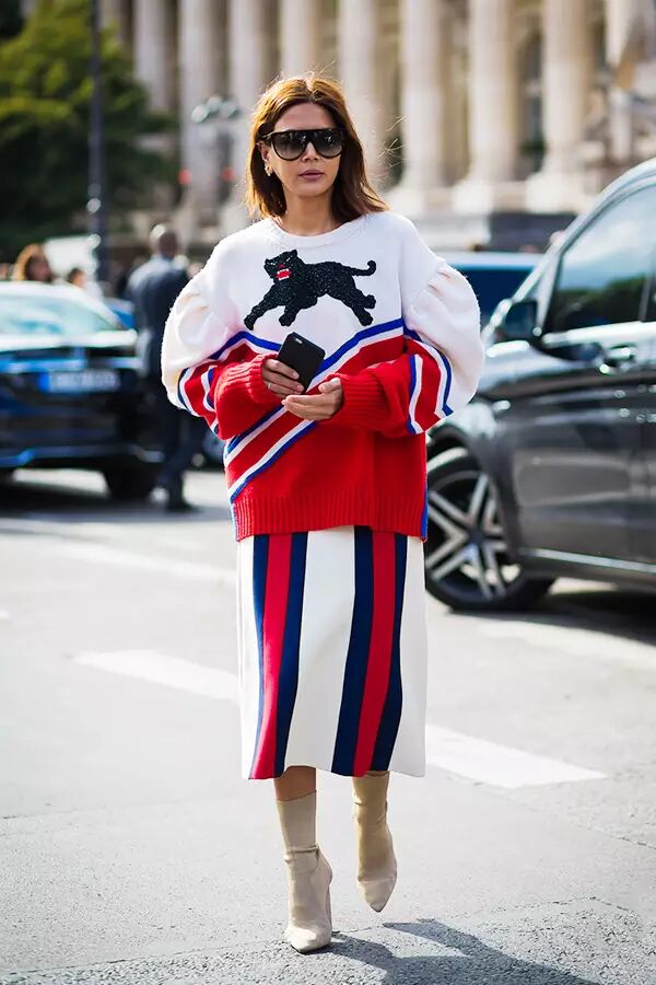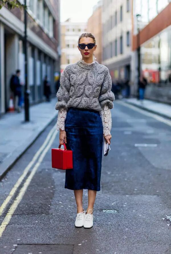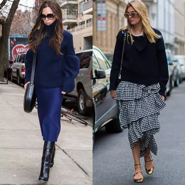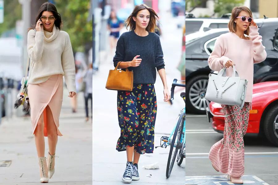 毛衣和长裙的搭配在时尚icon的造型中一直反复出现,红毯上可优雅大方,街拍中可时髦慵懒。