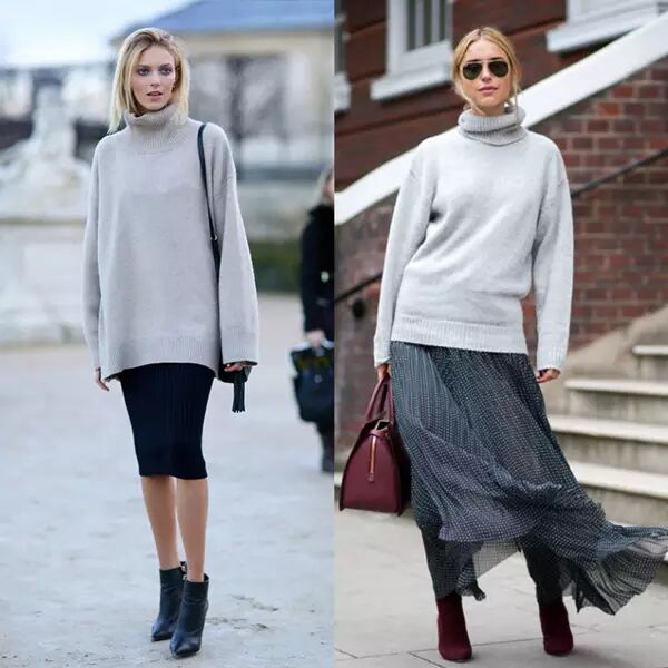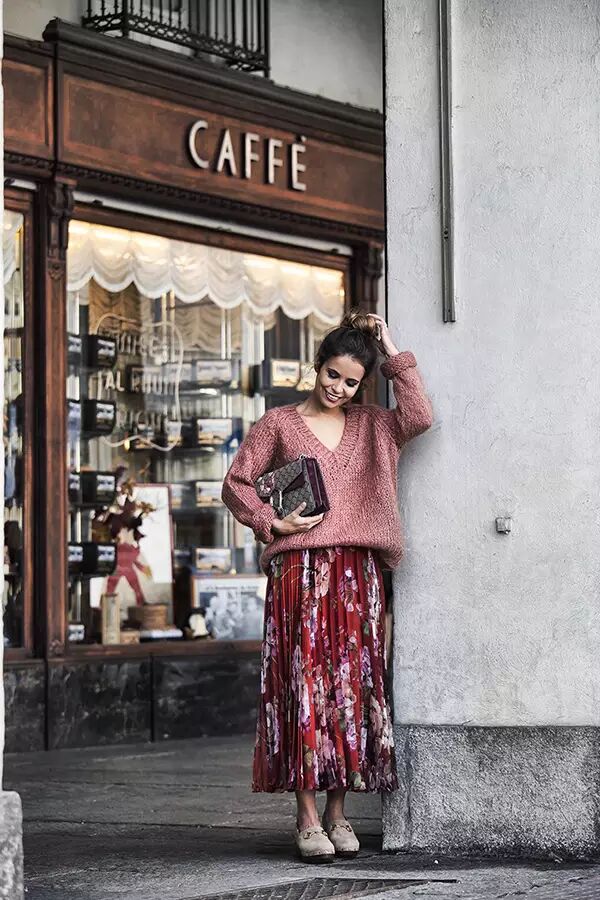 毛衣和长裙的搭配,不仅赢在造型美观,更胜在可以巧妙保暖。