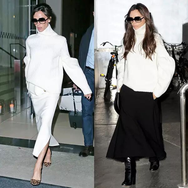 作为毛衣配长裙的“代言人”,贝嫂的这两身look就是对同色搭配重要性最好的说(jiao)明(xun)。