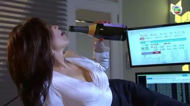 陈伟琪饰演进击的女职员为了讨好上司更准备了一个surprise,把酒淋在身上,充满名酒的上衣,酒色俱备,男人又怎能忍受。