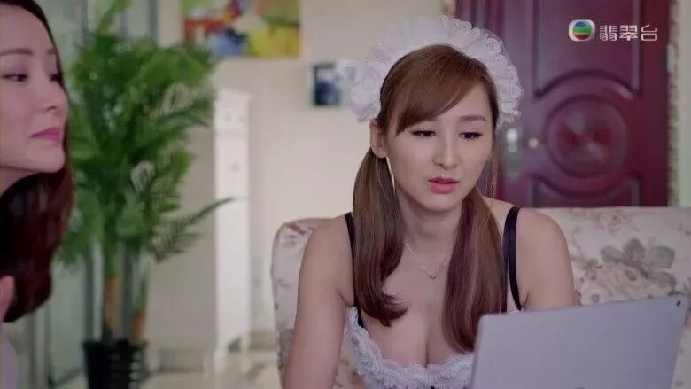 除了出水芙蓉,其实还有一幕是低胸女仆装,制服诱惑的极限。高海宁为了吸引有钱仔而穿这一身打扮!