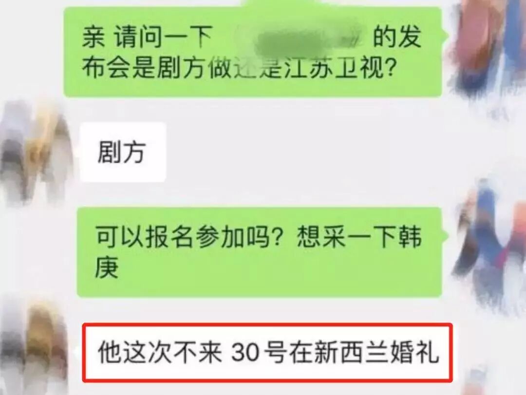 而且在媒体和工作人员的聊天记录里,也提到了,他在新西兰办婚礼不能出席活动。