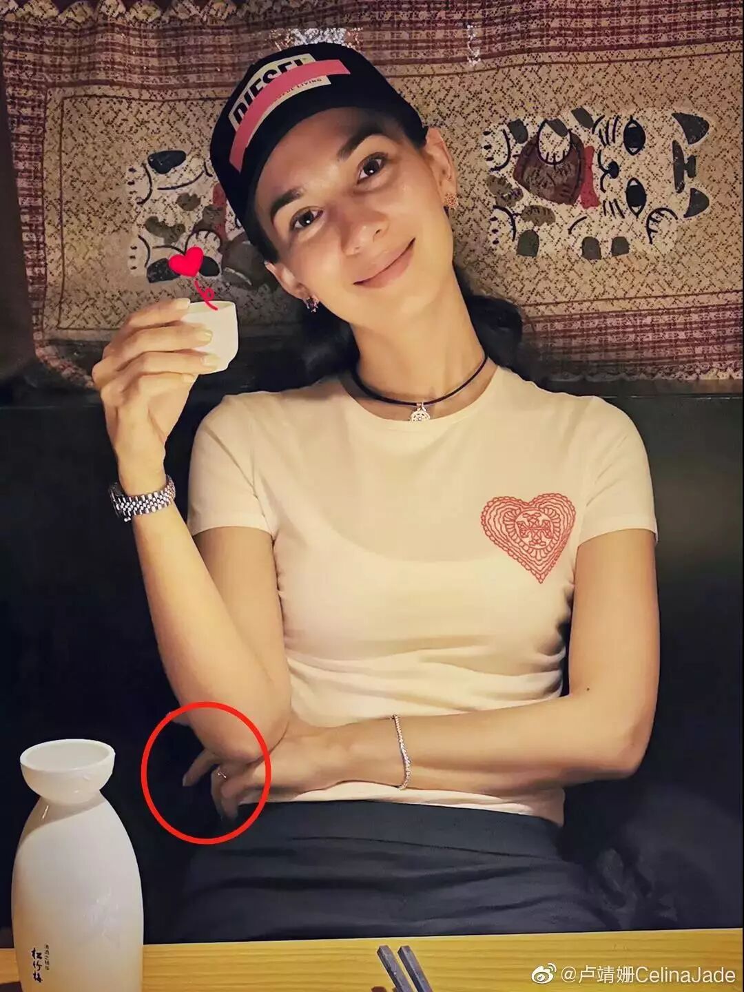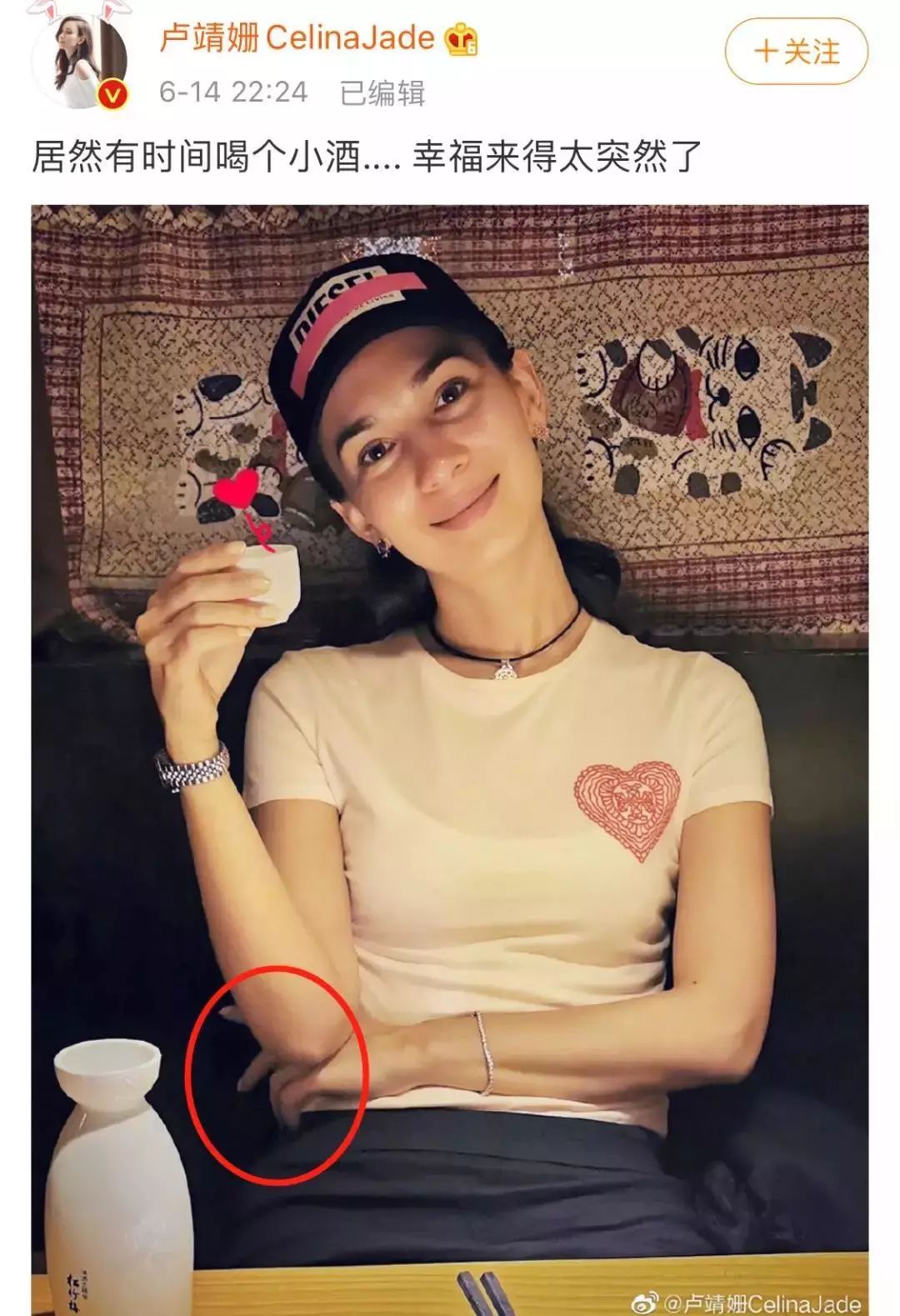 结果没几分钟,卢靖姗竟然编辑微博P掉了无名指上的钻戒,哈哈哈哈魔幻!