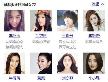 韩庚出道多年,且是曾经红极一时的老前辈了,在遇见卢靖姗之前,他被传过很多任绯闻女友,感兴趣的小伙伴们,可自行去扒扒这些陈年老瓜,也很有意思。