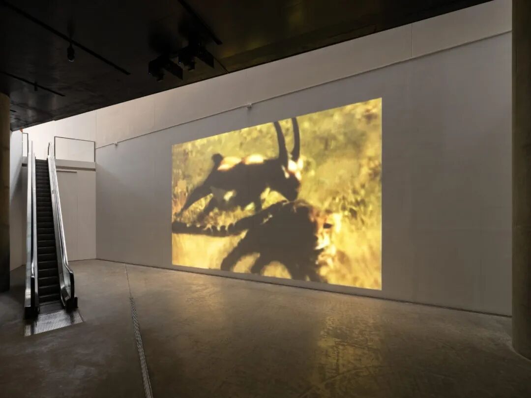 金范喜欢用轻描淡写的手法和不动声色的幽默感来强调并颠覆权力的动态关系。在其影像作品《奇观》(Spectacle,2010)中,他逆转了自然纪录片中的情节,让一只猎豹逃脱奔跑速度极快的羚羊。在同年的其他视频装置作品中,我们还看到《一艘被告知没有海的船》(A Ship That Was Taught There Is No Sea,2010)和《一块被告知是鸟的石头》(A Rock That Was Taught It Was A Bird,2010)。2008年,一幅名为《否认》(Denial)的帆布作品向观众发出了某种挑战,它用黑色字体清晰确凿地写道:“这既不是一块画布,也不是一幅绘画”,“这里没有这种东西”。正如那句老话所言:你会选择相信谁?是我?还是你那双会说谎的眼睛?