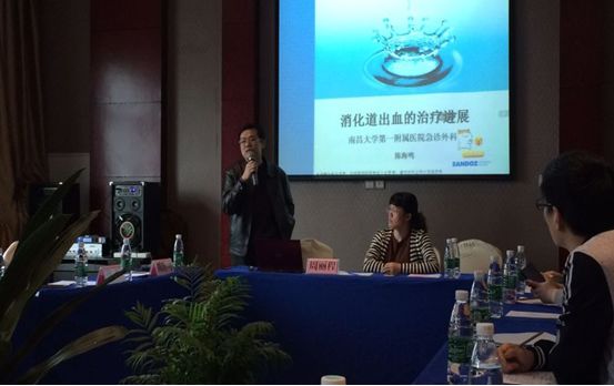 首先,由南昌大学第一附属医院急诊外科主任陈海鸣教授围绕消化道出血多学科治疗的进展作了精彩讲学。讲座中,陈教授介绍了当前国内外对急诊消化道出血治疗新动态、新观点及整合医学的思想;随后针对急诊外科(创伤救治中心)创伤救治的时效性:“白金十分钟,黄金一小时”、 创伤救治“一体化”优势、多发伤复合伤等创伤危重症救治必须专业化等方面展开了详细阐述;最后就国家卫建委进一步改善医疗服务行动计划(2018-2020年)举措中,关于建立“胸痛中心、卒中中心、创伤中心、危重孕产妇救治中心、危重儿童和新生儿救治中心”的相关政策进行了解读,指出医院成立急诊外科(创伤中心)是医院三年内进一步改善医疗服务,完善学科建设的重要任务。同时,陈教授还简要介绍了目前南大一附院急诊外科(创伤救治中心)的布局及在新院区建设国家急危重症创伤中心的发展规划。据悉,陈海鸣教授系南昌大学第一附属医院急诊外科主任、主任医师、硕导,中国医师协会创伤外科医师分会委员会委员,中华医学会创伤学分会急救与多发伤专业委员会委员,江西医学会创伤学专业委员会副主任,在我省急诊外科领域具有举足轻重的影响力。