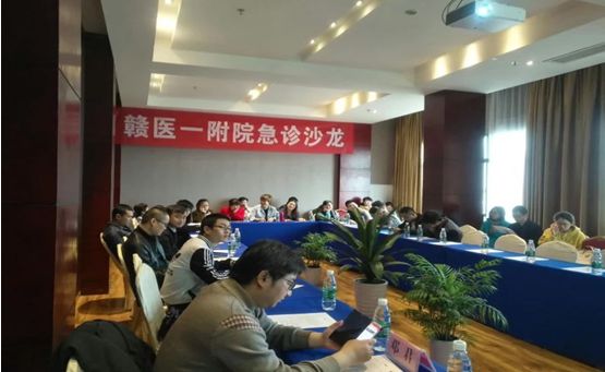 为积极参与到赣南医学院2018年求新学术论坛-临床诊疗新技术分论坛中,3月17日,我院急诊科组织多学科专家以多学科诊疗模式(MDT)就“急性消化道出血的诊疗”在汇康酒店会议室举办一期高质量学术沙龙。沙龙邀请到南昌大学第一附属医院急诊外科陈海鸣主任、邓君副主任医师以及我院消化内科谢军副主任前来研讨交流。活动由急诊科周丽程副主任主持,我院40余位医护人员共聚一堂交流学习。