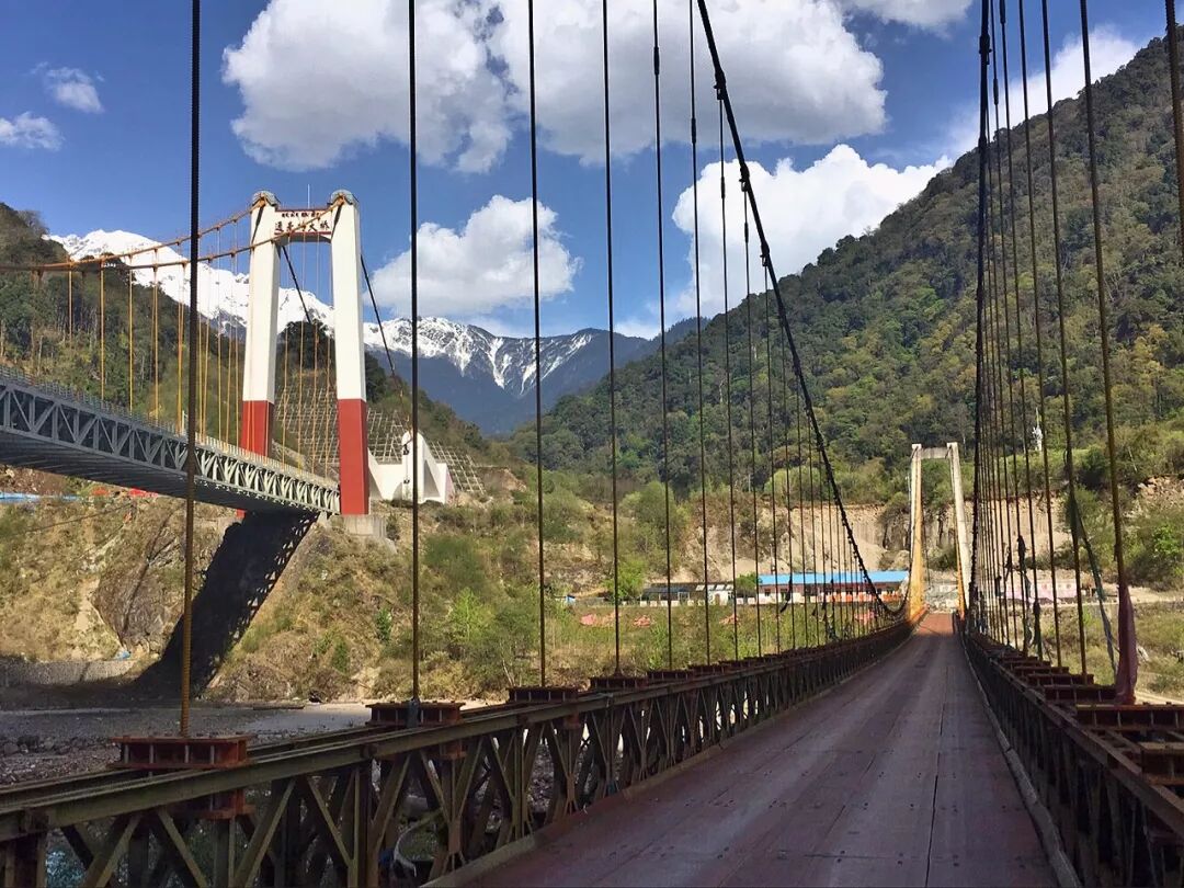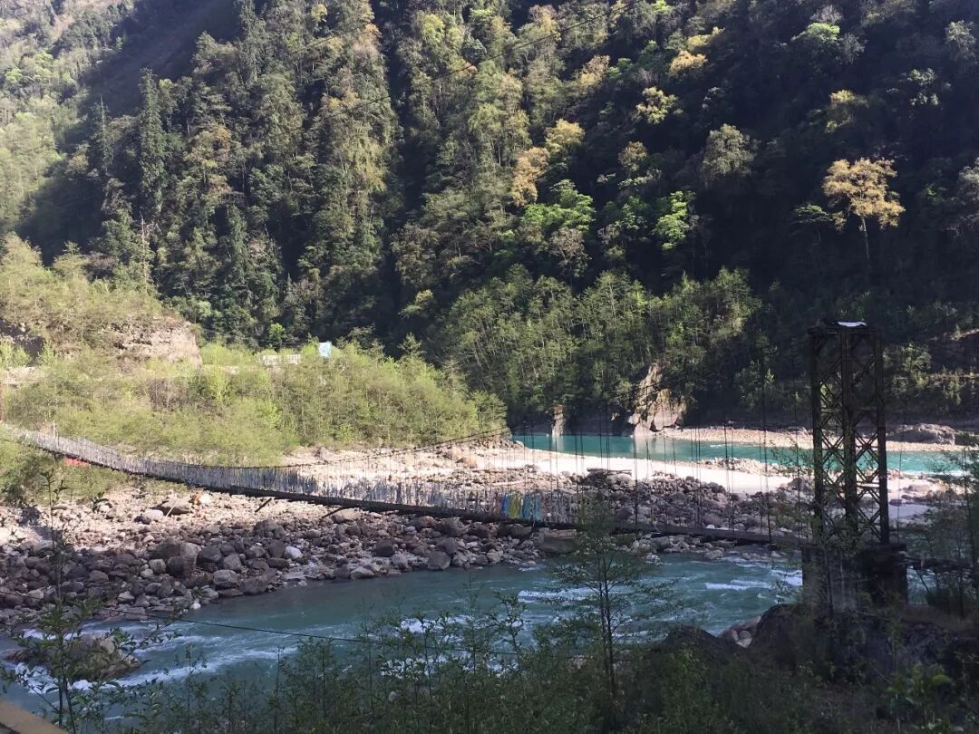 传说中,14公里的通麦天险位于波密县城和鲁朗镇之间,号称“通麦坟场”,是川藏线最险的一段路。听当地开车司机说,每次走都很感概,十几公里的路走三个多小时,每年都有好多车掉到悬崖沟里。2016年通了新路和新大桥,与下面旧路的桥形成鲜明对比。