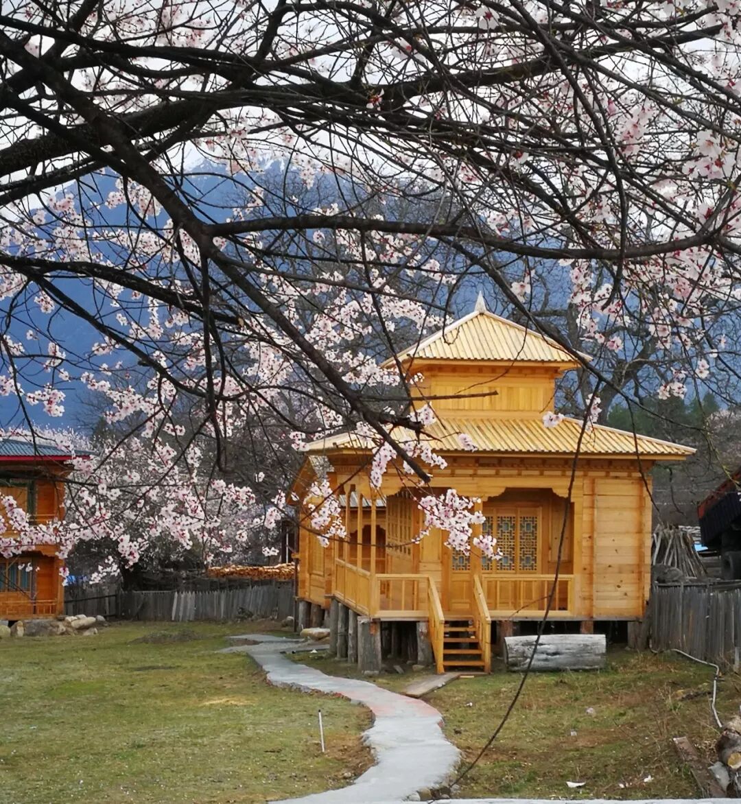 林芝地区的桃花异于江南碧桃的风格,学名叫“光核桃”,又名“西藏桃”,俗称“野桃”,树高花繁,开得狂野,树体高大,寿命可达千余年。而嘎啦桃花村则是每年桃花节开幕的地方。