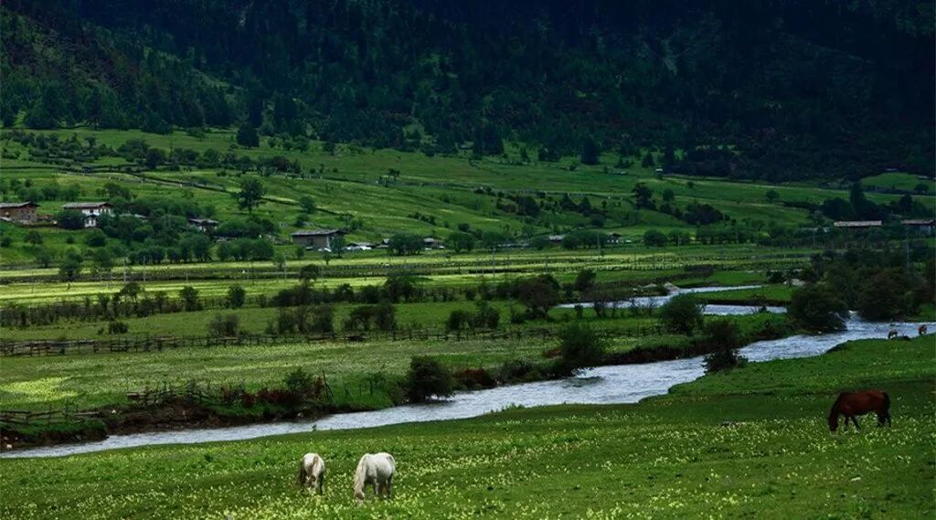 鲁朗,藏语意为“龙王谷”,也是“叫人不想家”的地方。林海位于距八一镇80公里左右的川藏路上,坐落在深山老林之中。鲁朗林海云蒸霞蔚、大气磅礴、风光优美,远处的雪山、冰川,与近处的原始森林、村落、河流交相辉映。鲁朗林海的树木以青冈为主,林中有大量鸟类栖息。