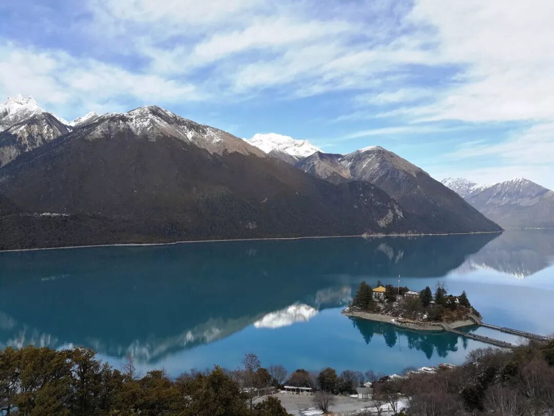 离开林芝前往拉萨途中来到巴松措,其以林木繁茂和群山耸立中的那一池碧水而广为外界所知。这里的湖心岛很特别,是个浮岛,下面是空的,只能靠岸边的铁索拉绳固定着。