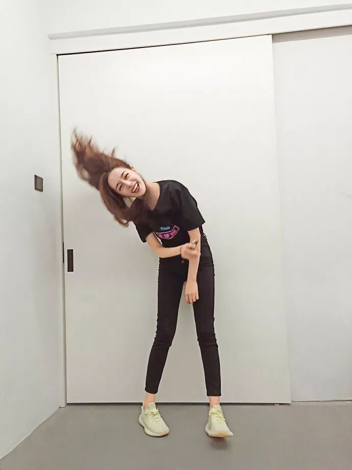 热巴的第一套look非常小仙女本人了,藕荷色仙女裙浪漫又不失典雅;第二套look就休闲阳光许多,黑色紧身裤搭配运动鞋非常显瘦。