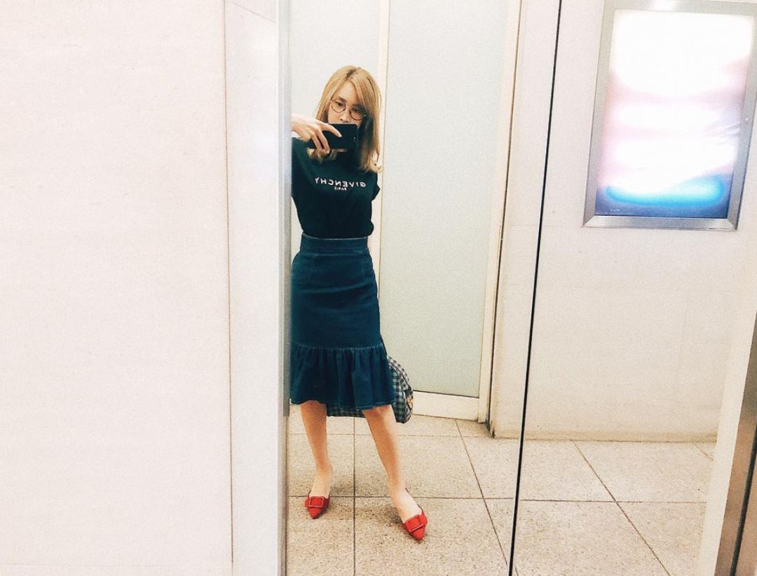 M姐还挺喜欢宋茜的私服穿搭,像这套白色卫衣搭配黑色百褶裙配穆勒鞋就很容易参考,也很适合日常。