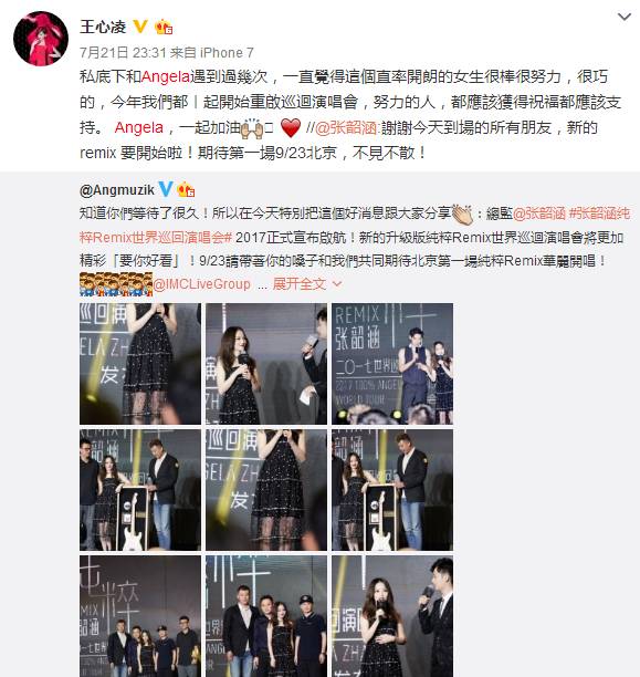 好姐妹张韶涵开演唱会,她特地定了花,发微博加油助威。