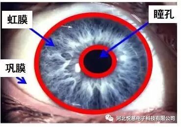 虹膜是眼睛里位于黑色瞳孔和白色巩膜之间的圆环部分,包含了很多相互交错的斑点、细丝、条纹、隐窝等细节特征,在人的一生中都极其稳定。研究表明,虹膜从婴儿胚胎期的第三个月前开始发育,到第8个月虹膜的主要纹理结构已经形成,且终生不变。