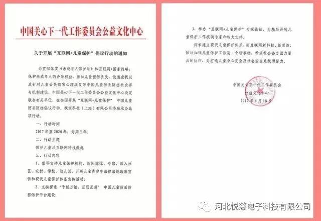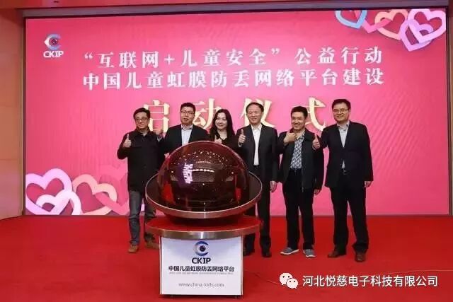 2017年4月27日,“互联网+儿童保护”行动暨中国儿童虹膜防丢网络平台建设新闻发布会在北京梅地亚电视中心举行。中国关工委、民政部、教育部、团中央、新华网、联合国儿童基金会驻华办事处等相关单位领导,人民日报、新华社、中央人民广播电台、中央电视台、新浪、搜狐、网易、凤凰等媒体的记者,爱心企业家、爱心媒体人、儿童公益组织代表及全国各地平台属地工作站合作方代表等百余人参加了发布会。