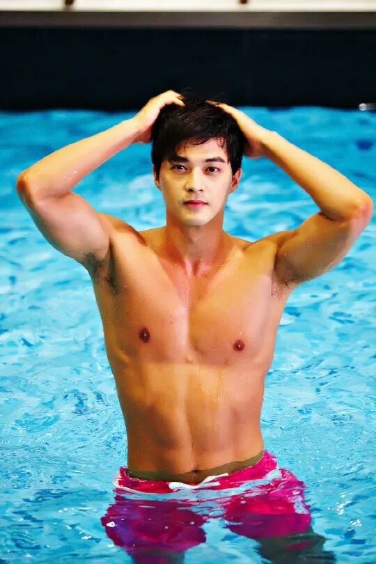 而美男的八块腹肌,一块不多,一块不少,秀色可餐...