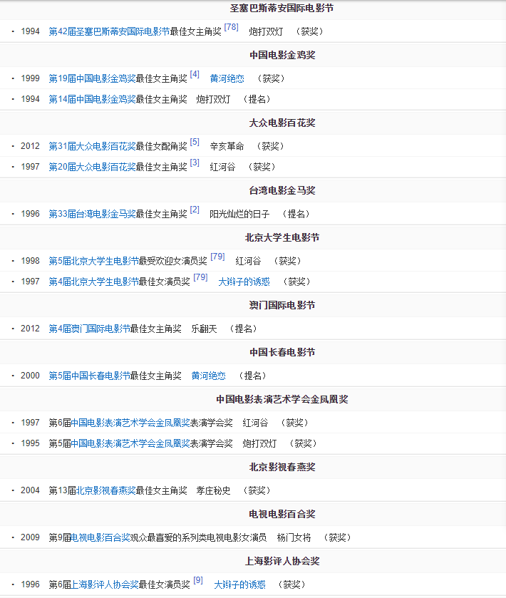 94年,就凭借《炮打双灯》获得第42届圣塞巴斯蒂安国际电影节最佳女主角奖,这一年她22岁。