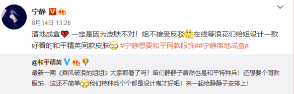 皮肤也安排妥妥的,还是乘风破浪姐姐合作款新皮肤,静姐还得现场演绎铿锵玫瑰枪头盔呢