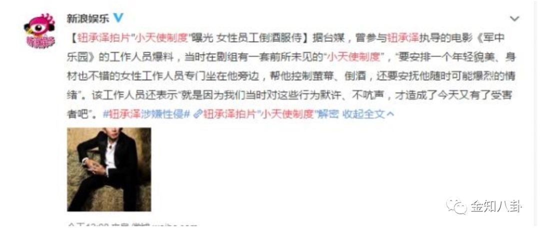 报道称,钮承泽在拍摄电影《军中乐园》时,在剧组有一套前所未见的“小天使制度”。