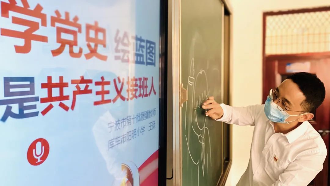 为了让党史学习教育内化于心,外化于行,王挺率先尝试将党史渗透进学科教学,和学生一起“画着学习党史”,得到浙江教育报的关注和报道。