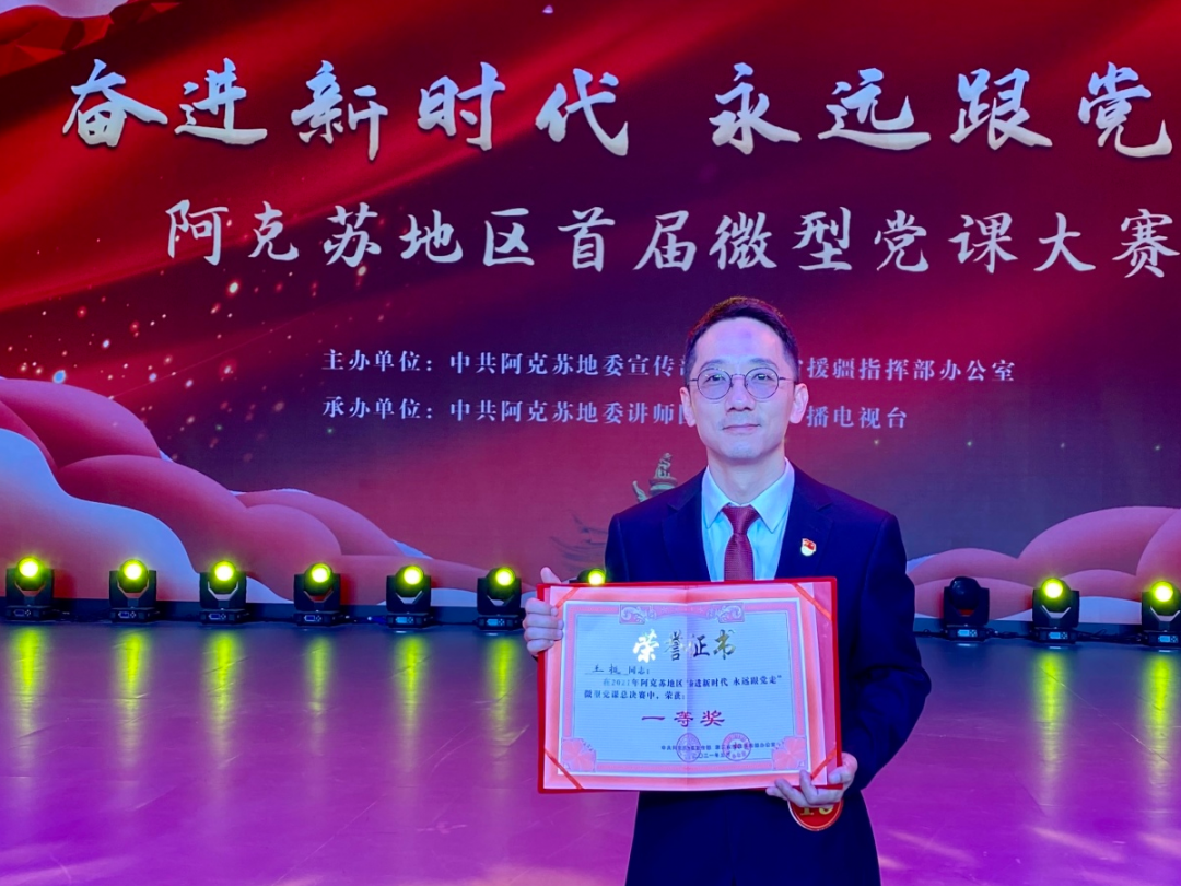 受疫情影响,虽暂时不能远赴新疆,但他和尚未谋面的新疆学子云端互动,以“艺”抗疫。每天12小时,1000余张示范图,哪怕口腔溃疡严重,也坚持不辜负童心;在新疆疫情反复却缺乏有效心理辅导机制之际,他第一时间牵线搭桥,把心理健康教育从北仑带到新疆,惠及3000多名师生家长,筑起一道暖心屏障;他建起暖心书吧,4000册图书落户阳明小学,让新疆孩子读上了“北仑的书”。他深信,在万里援疆中较真碰硬,方能体现一名党员干部的担当。