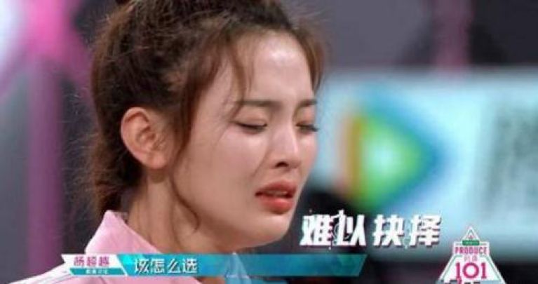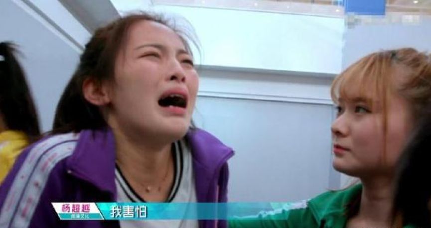 杨超越爱哭。第一次才艺表演前,因为紧张而哭。