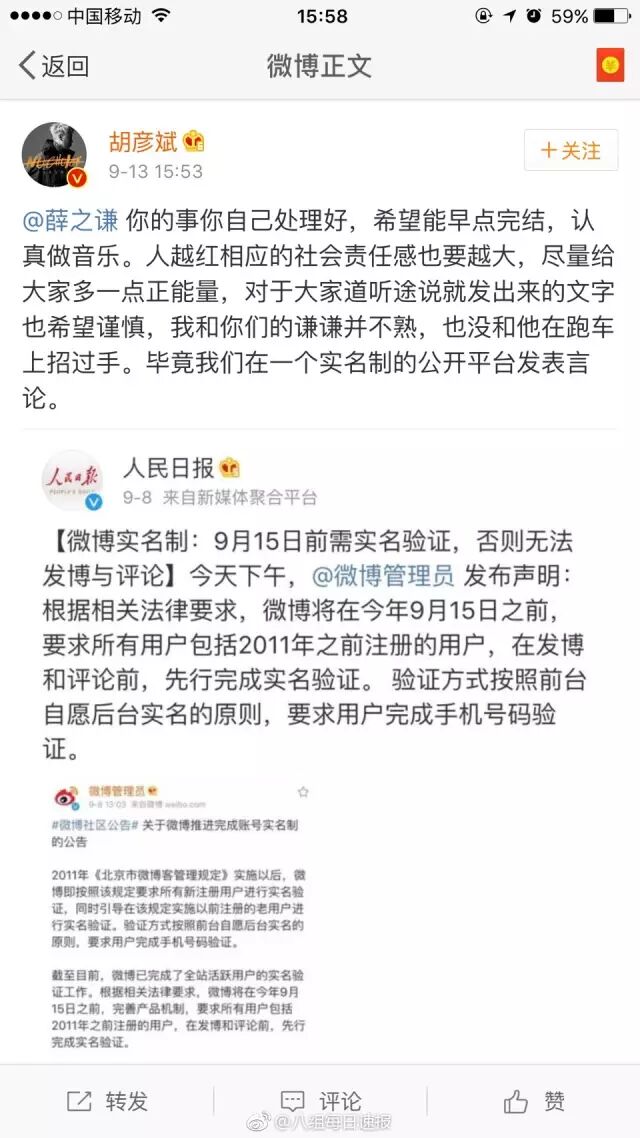 然后!胡彦斌自己发微博回应了这个事情,直接@了薛之谦!OMG!看到了吗!