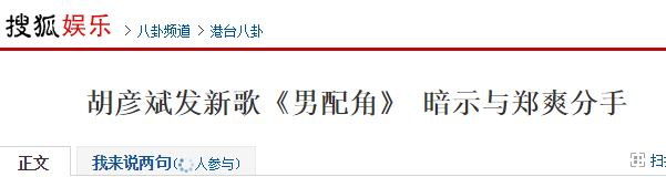 而且!郑爽和张翰的恋情实在是被太多人铭记了,所以说起郑爽的男朋友,大部分想到的都是张翰,一直以来,胡彦斌作为郑爽男朋友被大家想起来的时候实在是太少了。之后两个人没多久就分手了,还赢得一片叫好.......胡彦斌在分手的消息传出之后,就写了一首歌,暗示自己的处境。
