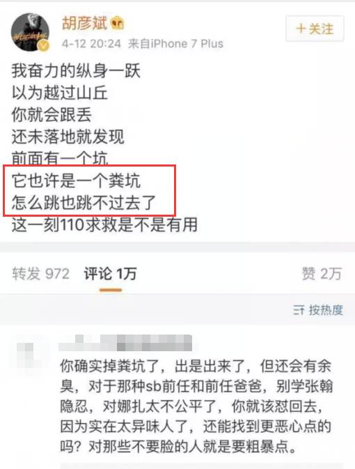 这一下,把胡彦斌也推上了热搜,不少人说,继郑爽放飞自我之后,胡彦斌也开始了,两个人可以组成一个“胡言爽语”了!这次胡彦斌怎么看都是因为女人才出头的,不少人说难道她忘了自己也是个花心大萝卜嘛?