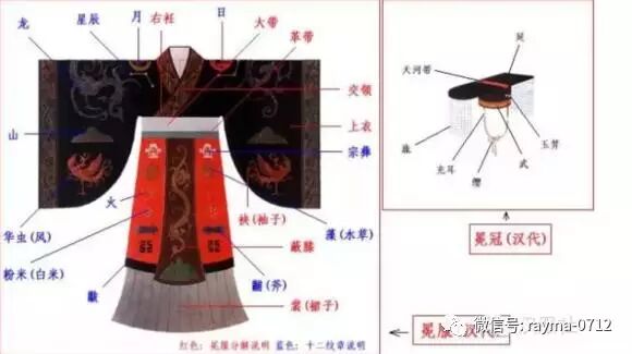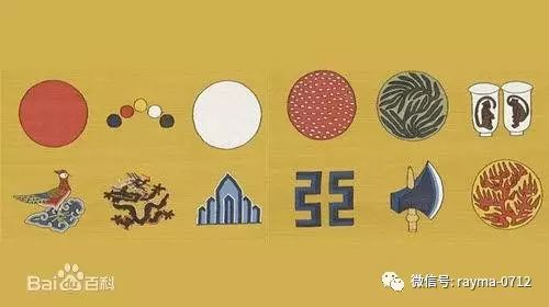 十二章纹其实就是十二种图案,包括日、月、星、山、龙、华虫、宗彝、藻、火、粉米、黼黻。