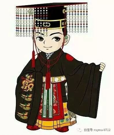 比之其他八位人物颇为素净的宣传照,马天宇的这套衣服看着有点花。帝王正装之所被称为十二章纹冕服,是因为要在一件黑&红的衣服上要摆满12对色彩亮丽的章纹。马天宇身上这件,大概为了美观做了点艺术加工,颜色大小个数应该都改了。要严格按照历史来,还应该更花一点。