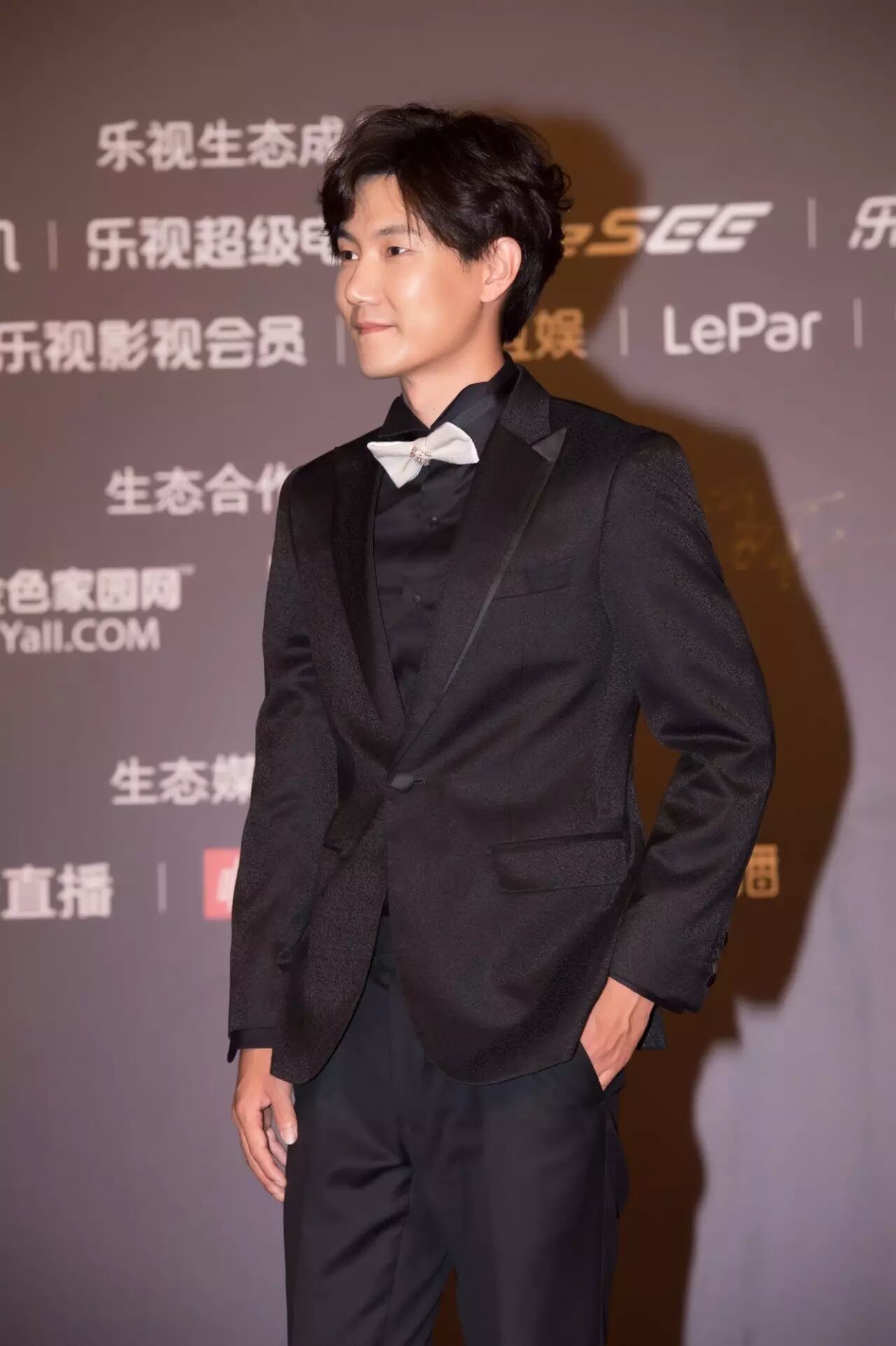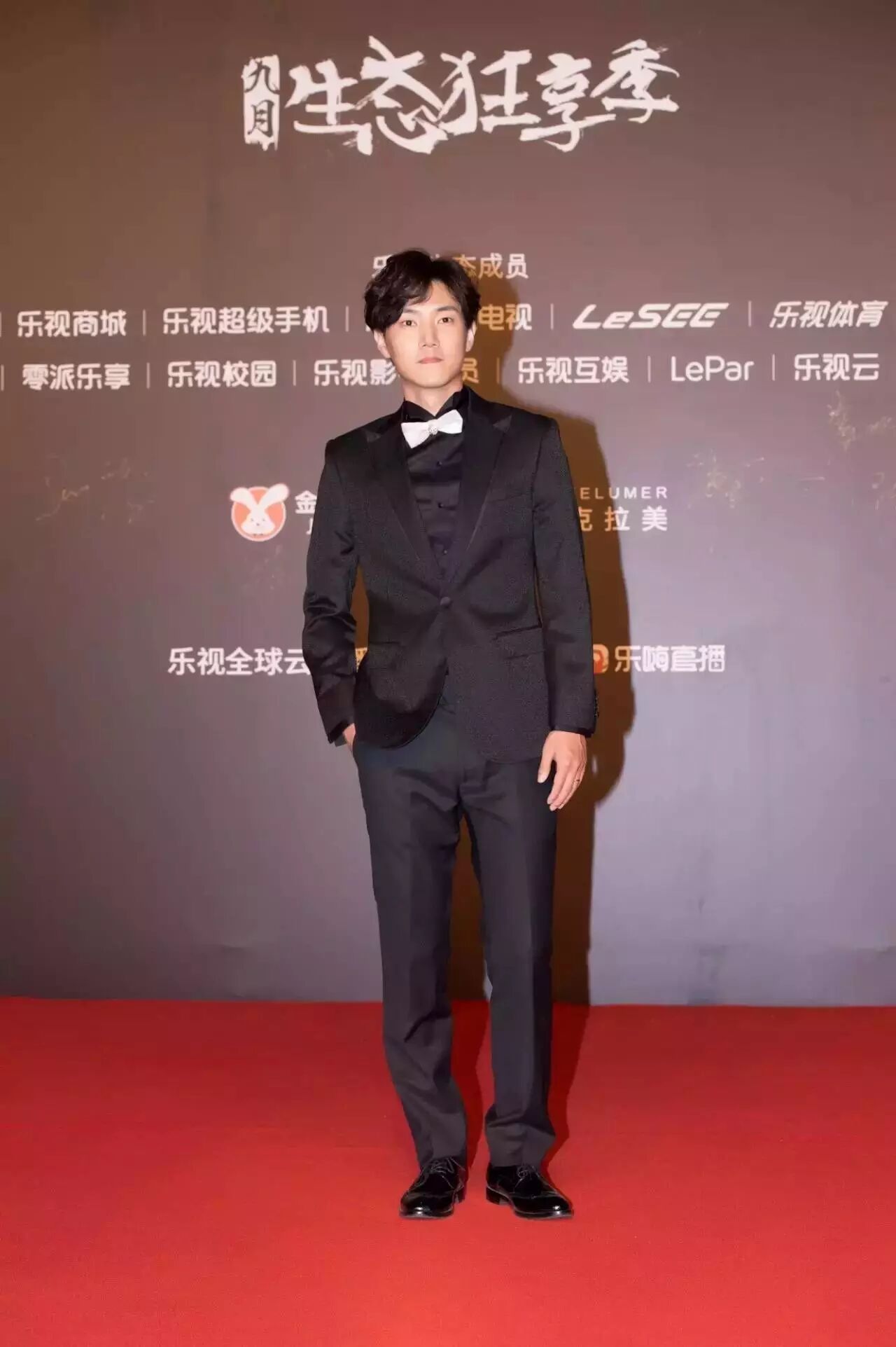 被歌迷们称为“低音绅士”的王晰,红毯造型也延续“绅士风”,一身黑色西服,搭配白色领结,帅气又低调。