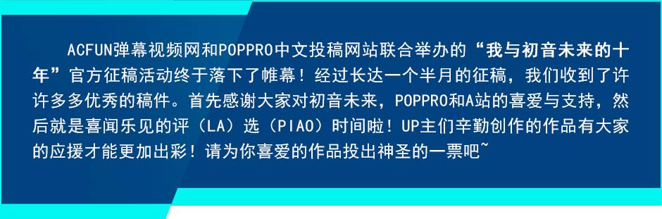 我与初音未来的十年,官方票选开启! AcFun弹幕视频网 日韩女星 2017-10-16 21:30:57 713 创作不易,用心坚持,欢迎请BaGua喝几杯爱心咖啡!打赏并支持本文 打赏并删除本文 点击阅读原文开启投票! 创作不易,用心坚持,欢迎请BaGua喝几杯爱心咖啡!打赏并支持本文 打赏并删除本文 感谢您的支持鼓励,我会继续努力的!文章地址:用户邮箱:打赏金额:USDT 请输入数字点击”去打赏“,即可进行打赏支持本文章哦 初音未来 About the Author AcFun弹幕视频网 功能介绍:AcFun弹幕视频网,为您带来各色新鲜有趣的ACG文化,一起跟随AC娘打开新世界的大门吧~ 官方认证:广州爱稀饭网络科技有限公司 Related Posts 我与初音未来的十年,官方票选开启! 2017-10-16 21:30:57 别人的青春!跟泽野弘之的BGM追忆那些感动! 2016-02-07 15:57:50 【吹雪】(上坂堇)发合照 快来看你们老婆 2015-08-17 19:05:09 【音乐】日本公信榜Oricon单曲周榜 2015-07-26 19:34:27 发表评论