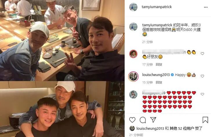 7月20日,谭耀文在片面社群账号上晒出一组聚首照,并配文称,大概了半年,3个爸爸终究聚在一块聊了一个夜晚。