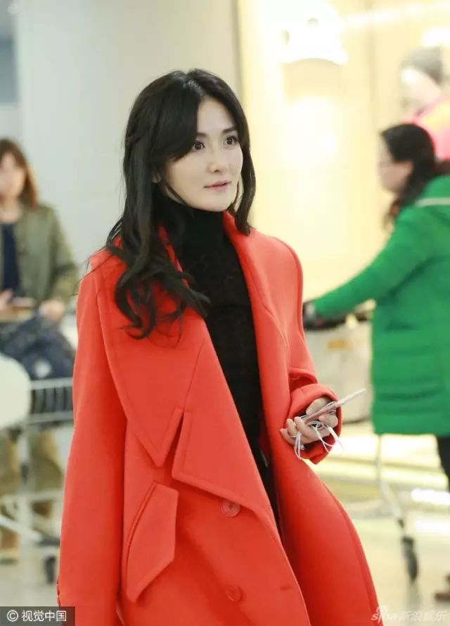 谢娜身穿大红色的及脚踝呢子大衣,非常大气优雅。
