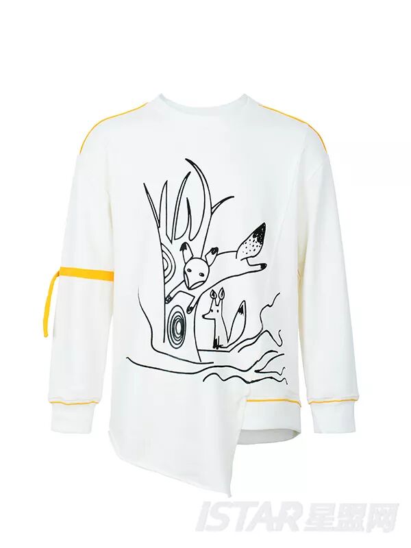 再加上打破常规的不规则下摆设计,使得整件卫衣既潮流个性又不失童趣可爱。
