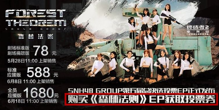 经纪公司会出投票EP,普通版78元一张,附带一张投票券,标准应援版588元有16票,全员应援版1680元有48票,还有5元0.1次投票权的电子票,相当于50元一票