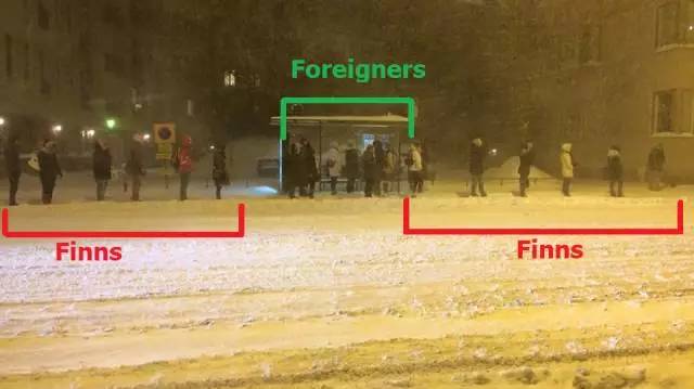 图片丨排队时候的外国人和芬兰人