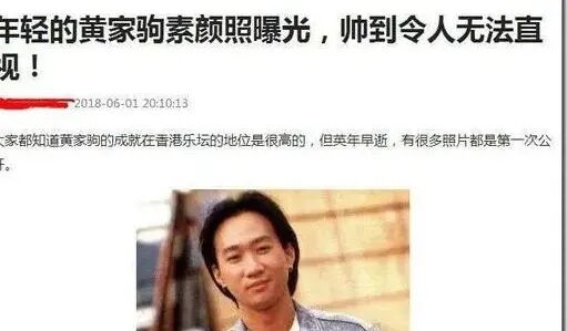 之所以讨论颜值这方面,是因为之前在某些驹迷评论中,常强调家驹的颜值如何逆天,强行把他往偶像小生上靠。昨天还在头条看到一篇文章,标题是“年轻的黄家驹素颜照曝光,帅到令人无法直视!”