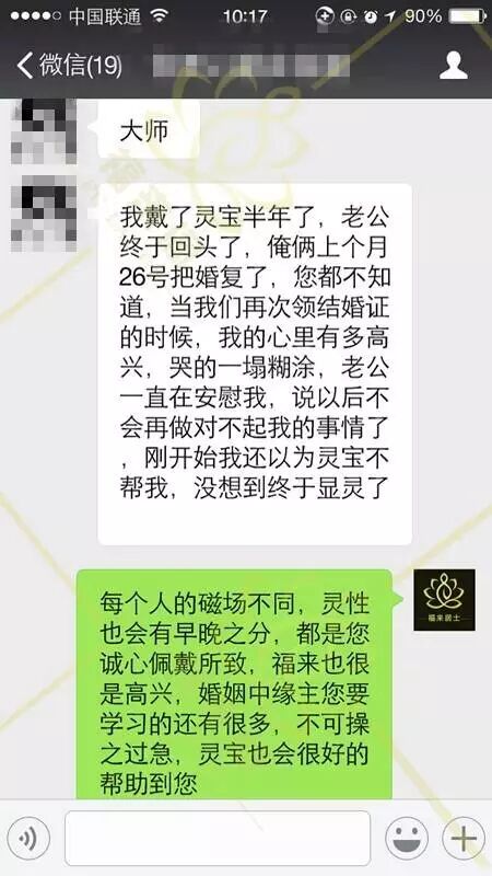 母亲就四处打听如何化解婆媳关系,后来经朋友引荐在微信上结识福来居士,居士看了我的八字,告诉我婚姻不顺是因为婚姻运势不旺导致的,和公婆关系不合,导致家庭风水败坏,婚姻名存实亡。说的正是我现在的问题,经居士的指点,我奉请了一对粉水晶狐仙吊坠,让我诚心佩戴,在老公接我回家后的时间里,没想到婆婆会主动关心我,就上次的事情,给我赔礼道歉,还请我原谅。现在我和老公婚姻问题已经彻底得到了解决。