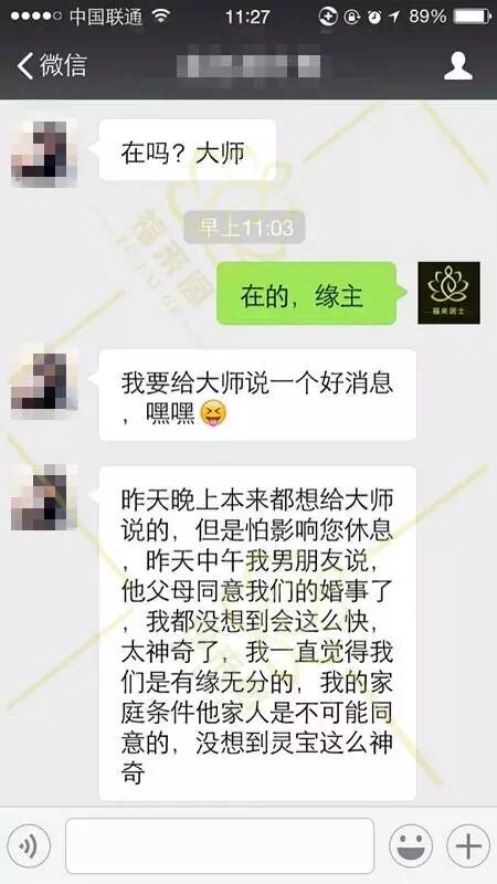 那天宅在家里闲着无聊,刷朋友圈闲逛的时候,突然看到一条关于福来阁狐仙水晶吊坠可以催姻缘的文章,我就抱着观察的态度,加了居士微信,我关注了一段时间之后,发现居士的朋友圈很有蕴含,每天都会分享大量的风水转运方法。在跟居士聊天中才发现,自己真的遇见贵人了。