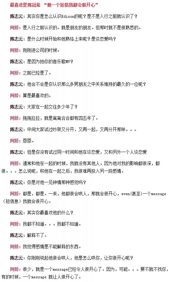 从采访中看得出阿娇当年确实是非常的喜欢陈冠希,但这份爱在艳照门事件之后,也消失殆尽。阿娇还坦言和陈冠希再无联系,两人的缘分也最终走到了尽头。