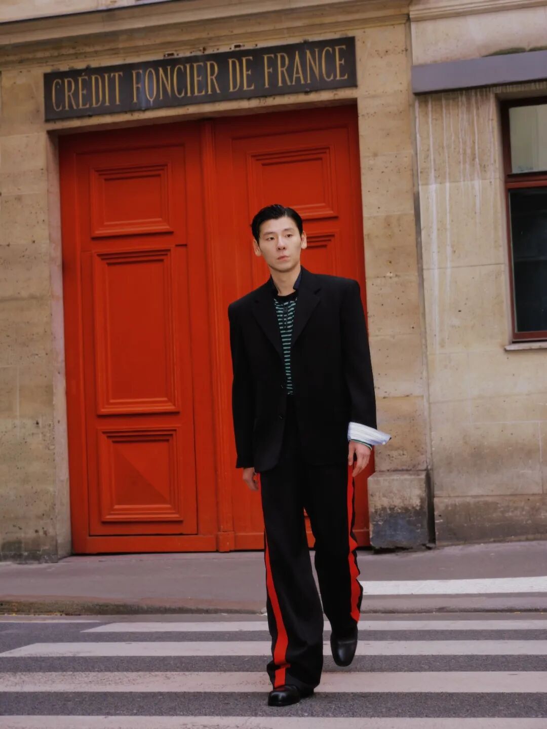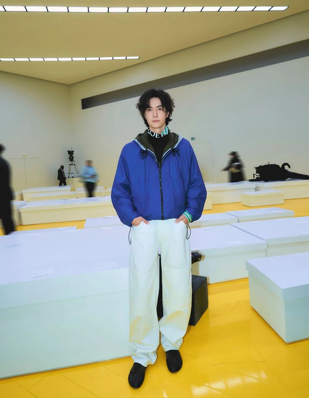 LOEWE全球品牌代言人王一博身着蓝色夹克、白色裤装抵达大秀现场,随性中不乏慵懒的少年感已经跨越时区溢出屏幕了。