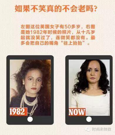 左图这位英国女子有50多岁,右图是她1982年时候的照片,从十几岁起就没笑过了,连微笑都没有。最多会把自己的嘴角“往上抬抬”。大家来看看,她确实要比同龄人要年轻好多。